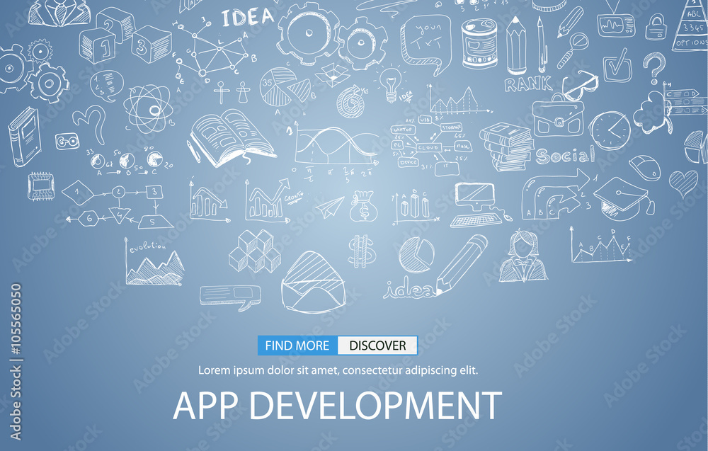 The watermark will not be included on Wall mural.: App development concept background with doodle design style :user interfaces,