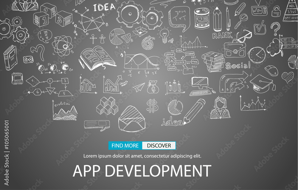 The watermark will not be included on Wall mural.: App development concept background with doodle design style