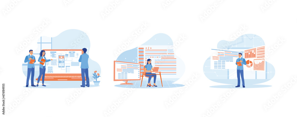 Wall mural : App devs concept - it expert working in modern office - website coding standards - binary and data on t