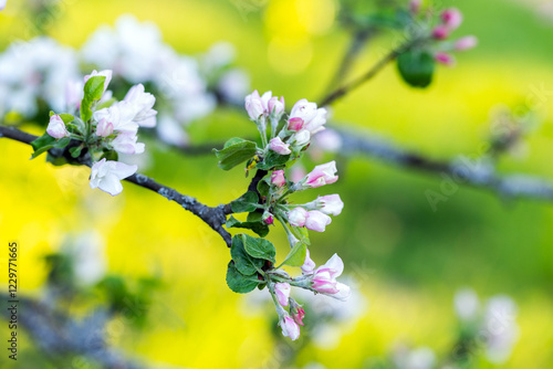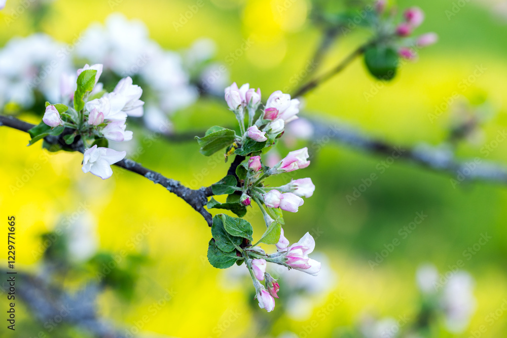 The watermark will not be included on Wall mural.: Apple tree in bloom - macro photo with selective soft focus