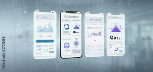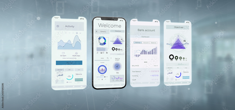 The watermark will not be included on Wall mural.: Application interface ui on a smartphone - 3d rendering