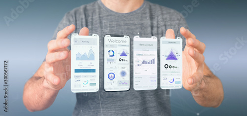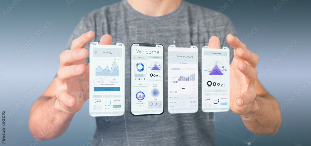 The watermark will not be included on Wall mural.: Application interface ui on a smartphone - 3d rendering
