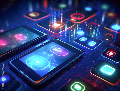 Wall mural application of smartphone with business graph and analytics data on isometric mobile phone. analysis - Wall murals Wall mural application of smartphone with business graph and analytics data on isometric mobile phone. analysis - Wall murals