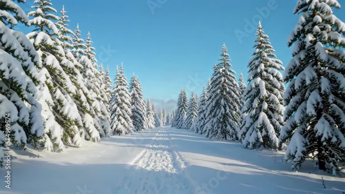 Wall mural arafed view of a snowy path through a forest with pine trees - Wall murals Wall mural arafed view of a snowy path through a forest with pine trees - Wall murals