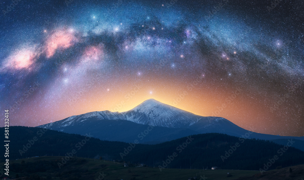 Wall mural : Arched milky way over the beautiful mountains at starry night