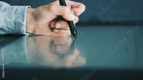 Architect using tablet pc display in the work creative session - designer using tablet pc while workiWall mural