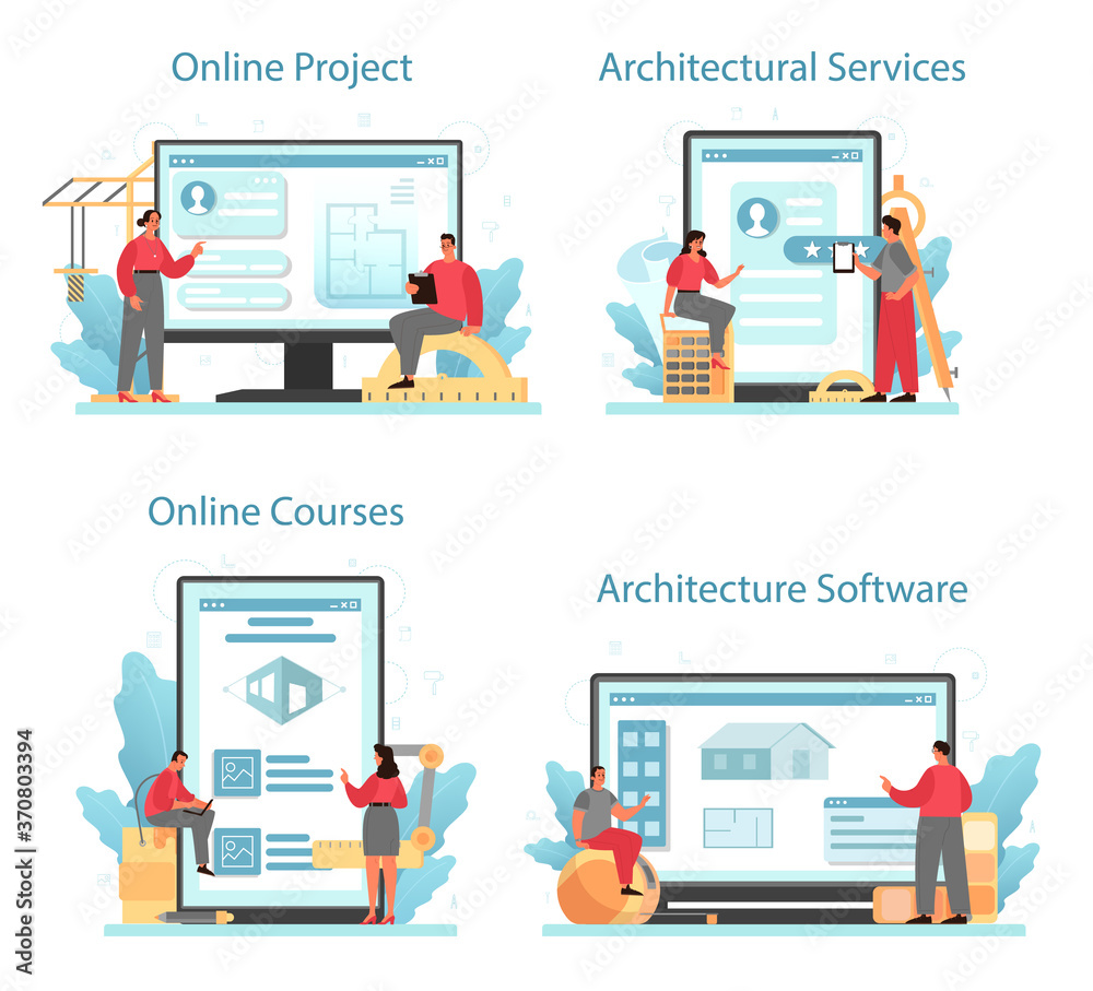The watermark will not be included on Wall mural.: Architecture online service or platform set - idea of building project