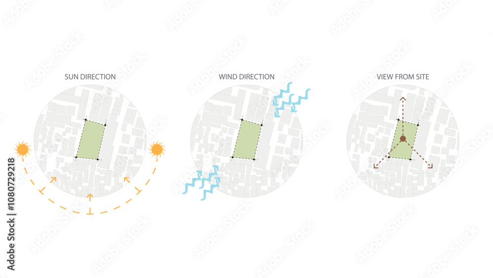 The watermark will not be included on Wall mural.: Architecture site analysis symbol icon element drawing graphic flat isolated vector - architecture el