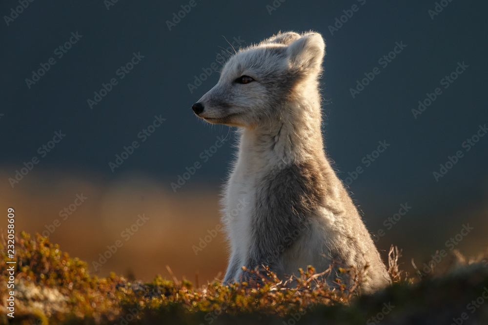 The watermark will not be included on Wall mural.: Arctic fox in a autumn setting in the arctic part of norway