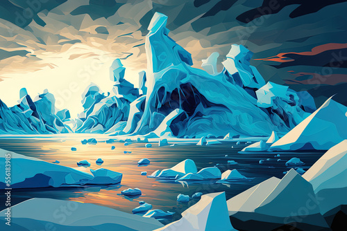 The watermark will not be included on Wall mural.: Arctic ice landscape in wintertime in a cartoon - generative ai