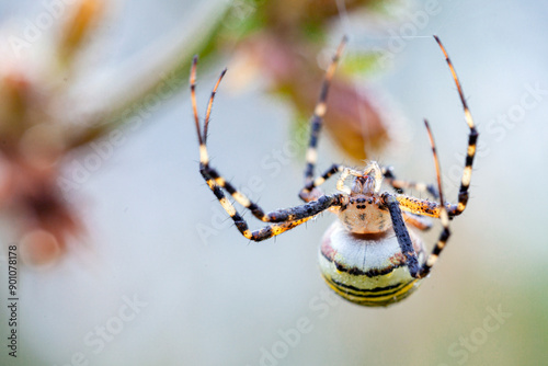 The watermark will not be included on Wall mural.: Argiope bruennichi (wasp spider) on web, invasive species of orb-web spider distributed throughout c