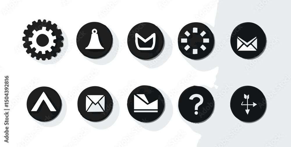 Array of shadowed blackcircle interface iconsWall mural