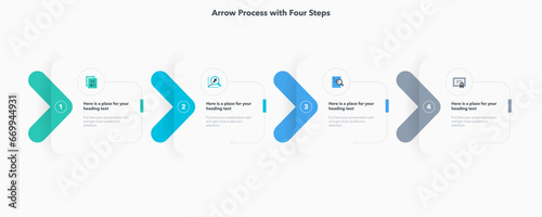 Wall mural : Arrow process flow diagram with four colorful stages - presentation template with thin lines and flat