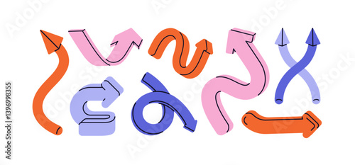 Wall mural arrows, pointers, computer point elements set. curved bent dynamic navigation icons in motion, movem