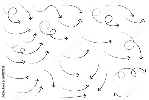 The watermark will not be included on Wall mural.: Arrows hand drawn doodle icons set - curved cartoon arrows sketches collection - flat and thin pointer