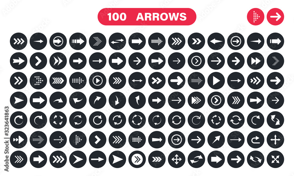 Wall mural : Arrows set of 100 black icons - arrow icon - arrow vector collection - arrow - cursor - modern simple arr