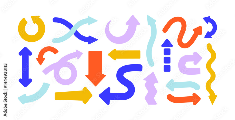 Arrows set - curved pointers pointing and showing movements, actions - point symbols, twisted design eWall mural