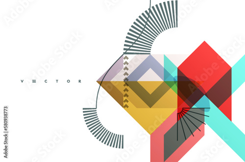 Wall mural art composition of flat colorful vector shapes. abstract transparency geometrical background. cover