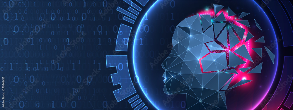 Wall mural artificial intelligence (ai) and big data concept. machine cyber mind. humen face with binary data f - Wall murals Wall mural artificial intelligence (ai) and big data concept. machine cyber mind. humen face with binary data f - Wall murals