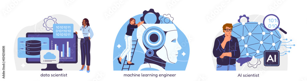 Wall mural artificial intelligence abstract illustration set. machine learning, neural networks, ai, and data s - Wall murals Wall mural artificial intelligence abstract illustration set. machine learning, neural networks, ai, and data s - Wall murals
