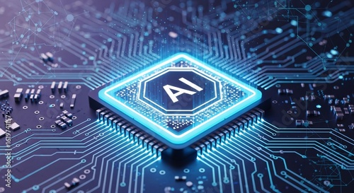 Wall mural artificial intelligence ai chip processor futuristic technology circuit board digital innovation