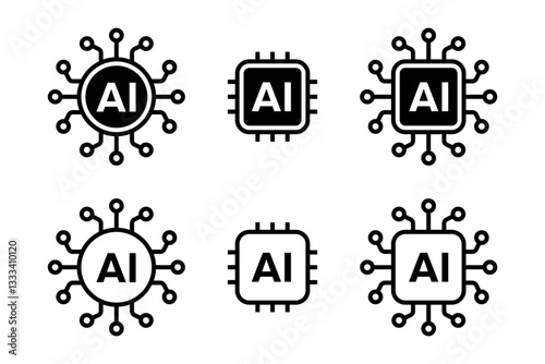 Wall mural : Artificial intelligence ai processor chip black line icon set - ai processor circuit symbol logo - min