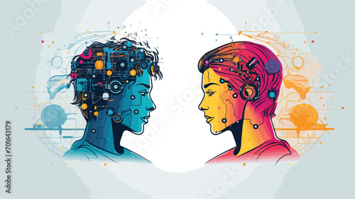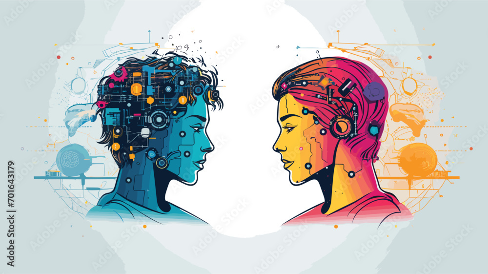 Wall mural artificial intelligence and robotics with a vector art piece that explores the synergy between human