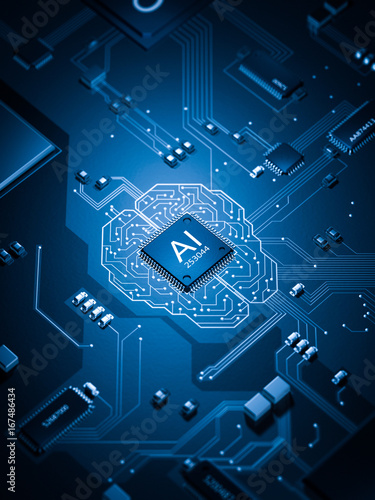 Wall mural : Artificial intelligence electronic circuit board future of technology 3d rendering
