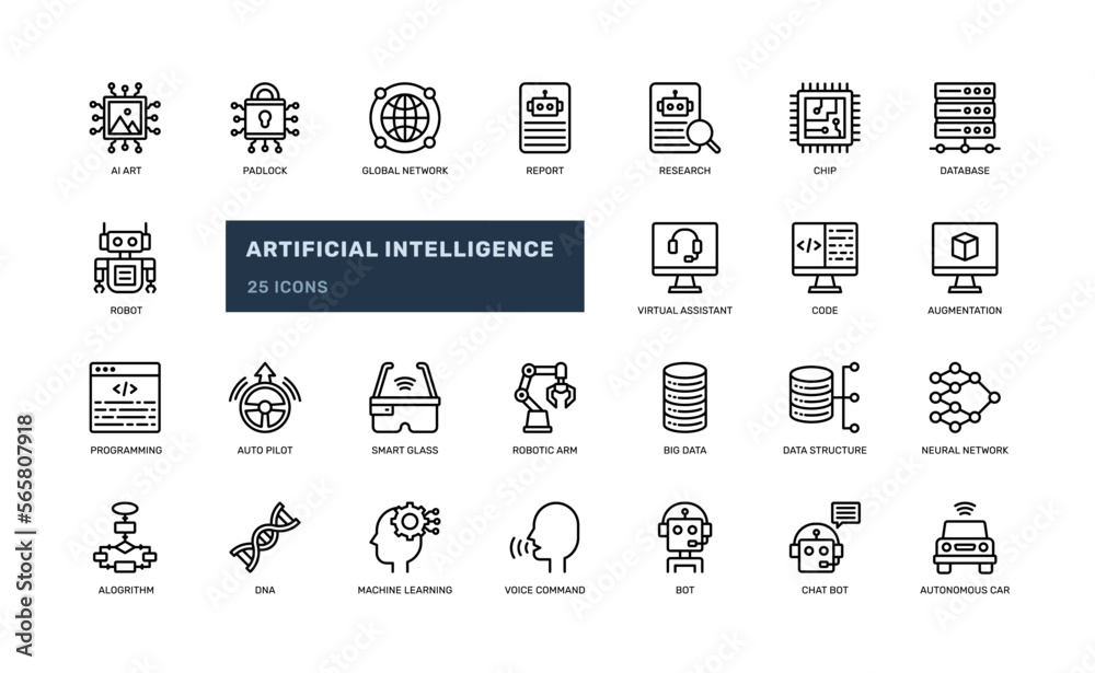 Artificial intelligence future technology ai system machine learning collect database detailed outliWall mural
