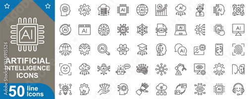Wall mural artificial intelligence icons set. featuring machine learning, neural networks, robotics, automation