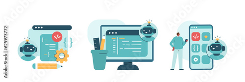 Wall mural artificial intelligence illustrations set. collections of scenes with character using ai chat bot fo - Wall murals Wall mural artificial intelligence illustrations set. collections of scenes with character using ai chat bot fo - Wall murals