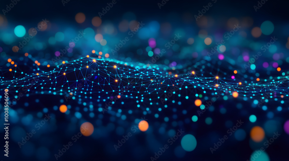 The watermark will not be included on Wall mural.: Artificial intelligence in a network connection - structural transmission of information - 3d renderin