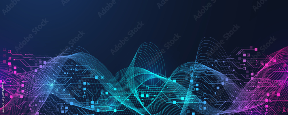 Wall mural artificial intelligence or machine learning vector design. quantum computer technology concept with  - Wall murals Wall mural artificial intelligence or machine learning vector design. quantum computer technology concept with - Wall murals