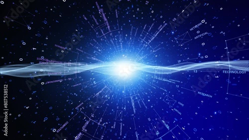 Wall mural artificial intelligence science word cloud with waves animation background.