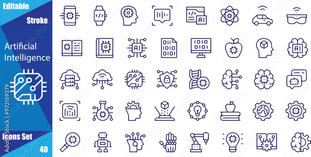 Wall mural : Artificial intelligence set of web icons in line style - ai technology icons for web and mobile app -