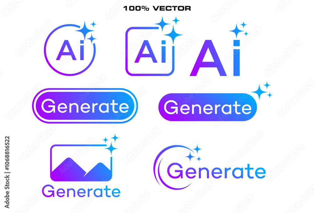 The watermark will not be included on Wall mural.: Artificial intelligence stars app logo colorful icon set - create generate prompt ai application symb
