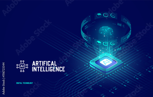 Wall mural : Artificial intelligence web banner, computer database concept with hologram brain and analytics, ai