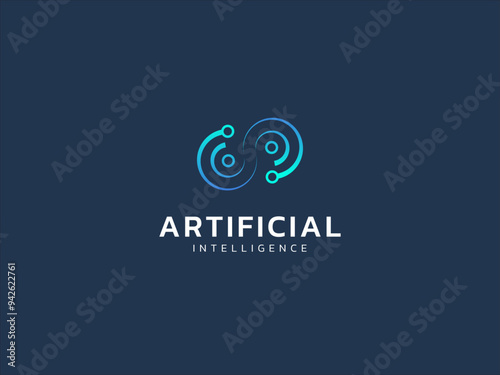 Wall mural : Artificial intelligence with circle twisted infinity technology analysis logo vector design concept -