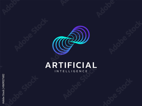 The watermark will not be included on Wall mural.: Artificial intelligence with waves circles twisted infinity technology analysis logo vector design c