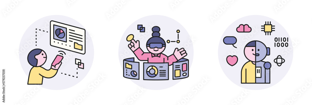 The watermark will not be included on Wall mural.: Artificial intelligence - virtual reality data analysis and human half robot half -