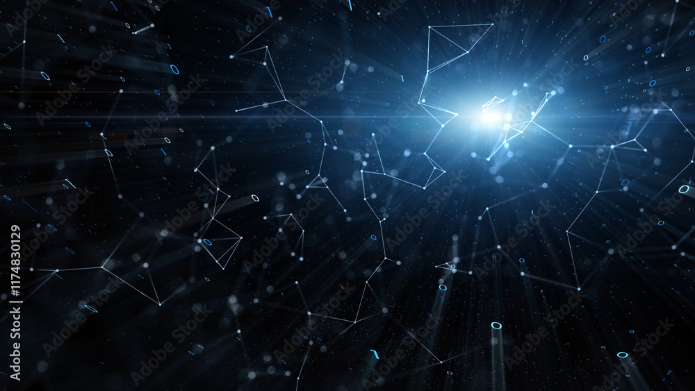 Wall mural artistic lines dots binary code cyberspace network illustration.