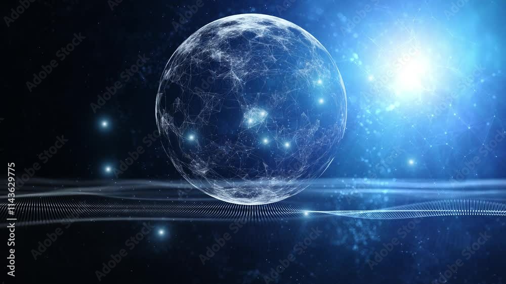 Wall mural artistic loop digital sphere and waves on blue shiny network background. copy space science animatio - Wall murals Wall mural artistic loop digital sphere and waves on blue shiny network background. copy space science animatio - Wall murals
