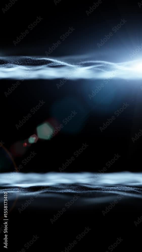 Wall mural artistic loop sea waves with lens flare on black copy space vertical background. - Wall murals Wall mural artistic loop sea waves with lens flare on black copy space vertical background. - Wall murals