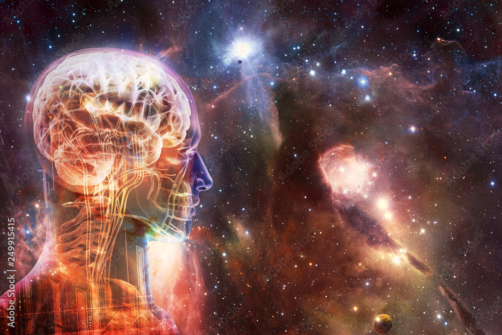 The watermark will not be included on Wall mural.: Artistic modern abstract golden human artificial intelligent interface in multicolored smooth beauti