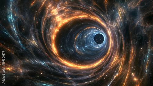 Wall mural artistic representation of a wormhole with glowing edges and swirling patterns in a cosmic deep spac