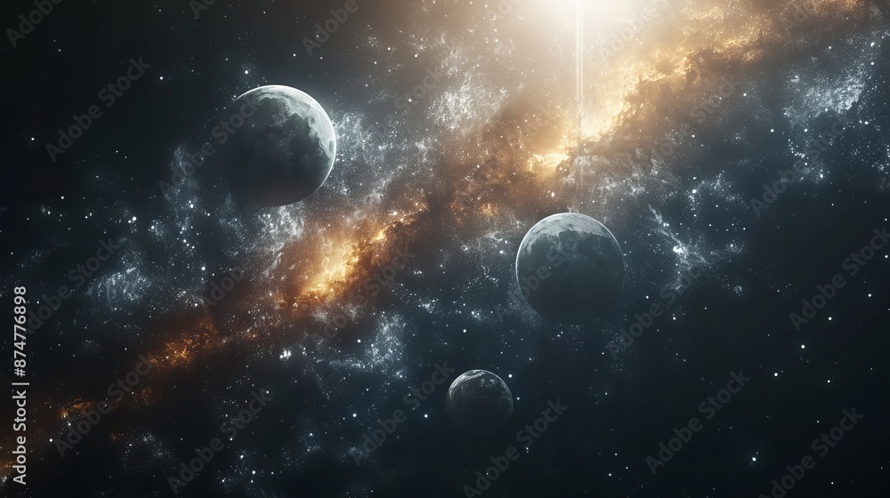 Wall mural artistic representation of planets in a galaxy with nebulae and distant stars generative ai - Wall murals Wall mural artistic representation of planets in a galaxy with nebulae and distant stars generative ai - Wall murals