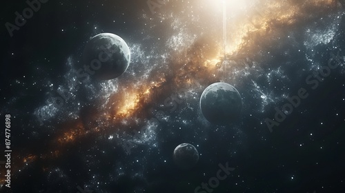 Wall mural : Artistic representation of planets in a galaxy with nebulae and distant stars generative ai