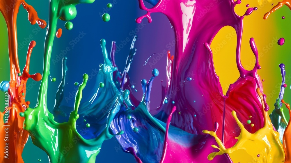 Wall mural : Artistic splashes of color seamless pattern - vibrant splashes of multicolored paint background