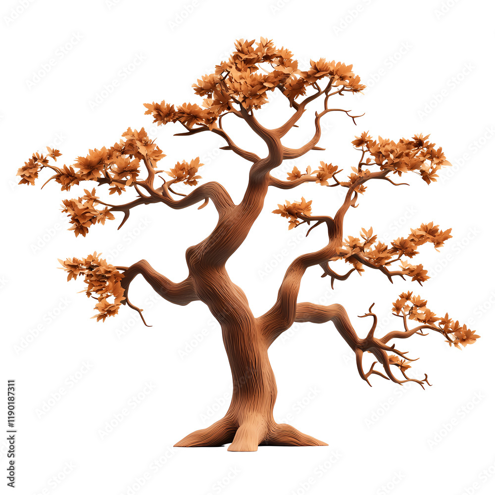The watermark will not be included on Wall mural.: Artistic tree with intricate branches and golden leaves, white isolate background -