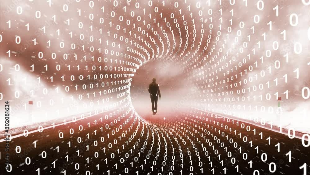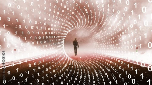 Wall mural artistic walking on digital binary numbers cyberspace road. futuristic artificial intelligence backg - Wall murals Wall mural artistic walking on digital binary numbers cyberspace road. futuristic artificial intelligence backg - Wall murals